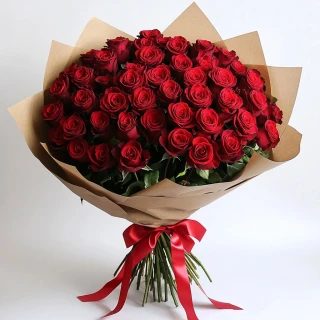 Букет оформлен в элегантной крафтовой упаковке, которая придаёт ему стильный и современный вид, подчеркивая естественную красоту цветов. Подарите букет 45 красных роз и дайте своим чувствам зазвучать на полную мощь!