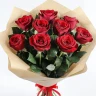 Этот букет из девяти красных роз — настоящий символ любви и страсти. Каждая роза, с яркими и насыщенными лепестками, излучает тепло и нежность, создавая атмосферу романтики. Их изысканная форма и глубокий цвет привлекают внимание и дарят радость. Букет оформлен в стильной крафтовой упаковке, которая добавляет нотку естественности и утонченности. Простой, но элегантный дизайн подчеркивает красоту самих цветов и создает гармоничное сочетание с их яркостью.